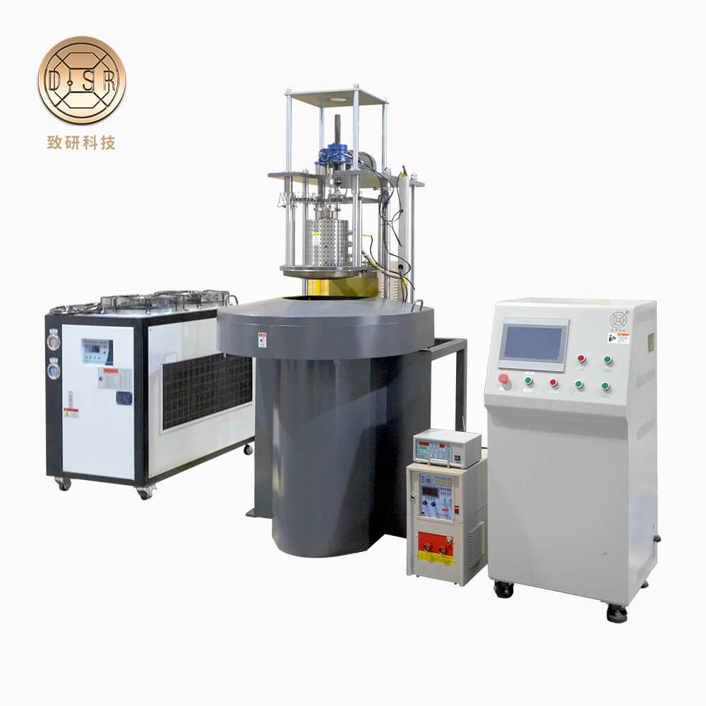 离心熔融纺丝机使聚合物在螺杆内加热,进行熔融、挤压形成熔体,熔体通过螺杆进入计量泵,计量泵加压,再通过喷料组件,喷射进入旋转着的旋转盘,旋转盘在离心作用下,顺着离心盘的通道甩出,通过环境温度冷却、变细形成纳米纤维。